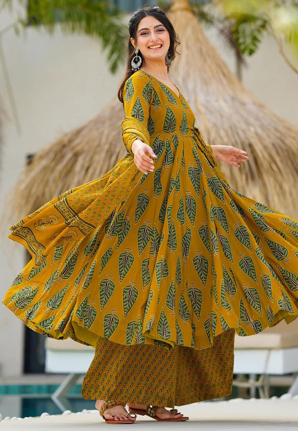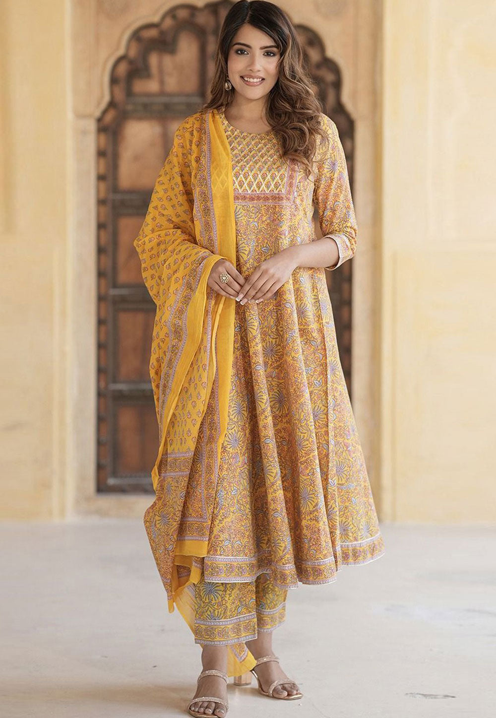 Mustard Muslin Readymade Palazzo Suit