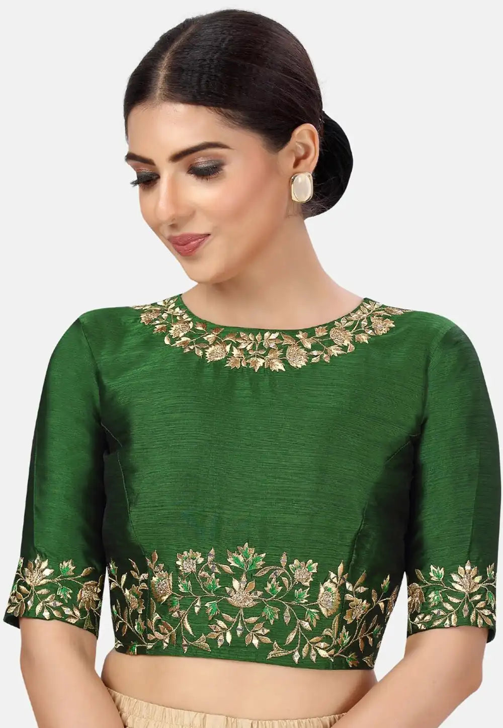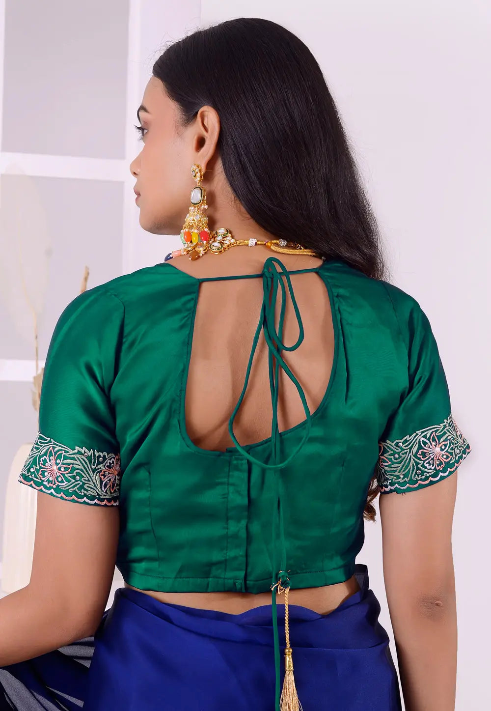 Green Satin Silk Readymade Blouse
