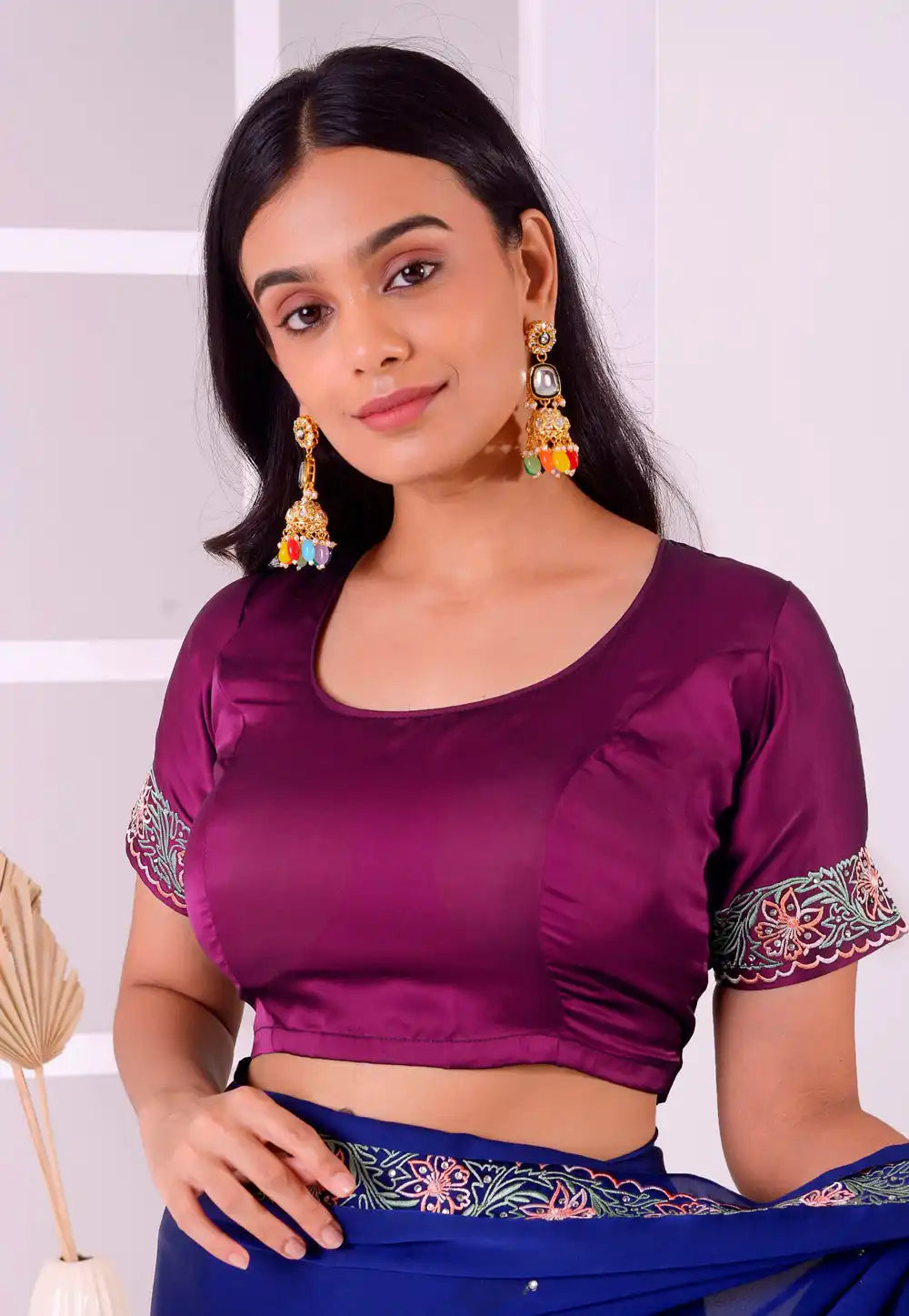 Purple Satin Silk Readymade Blouse