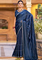 Navy Blue Shimmer Chiffon Saree With Blouse