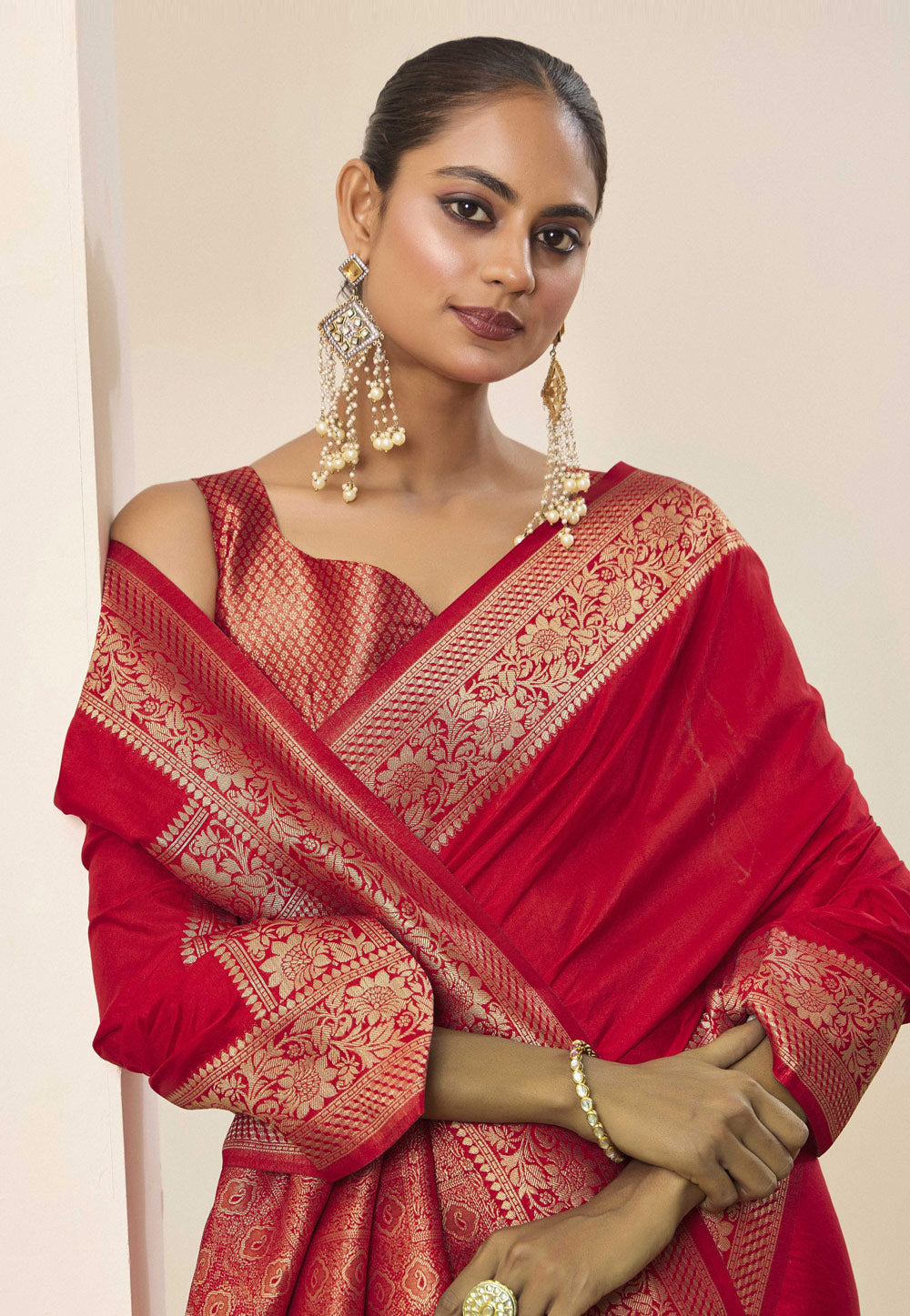Red Silk Saree With Blouse