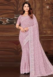 Pink Georgette Saree With Blouse