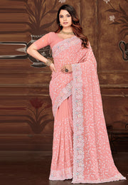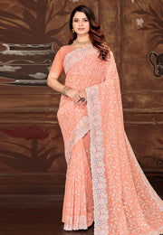 Peach Georgette Saree With Blouse