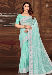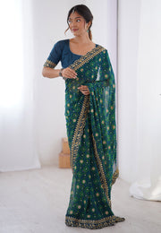 Teal Georgette Saree With Blouse