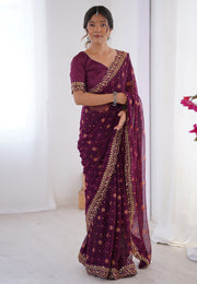 Wine Georgette Saree With Blouse
