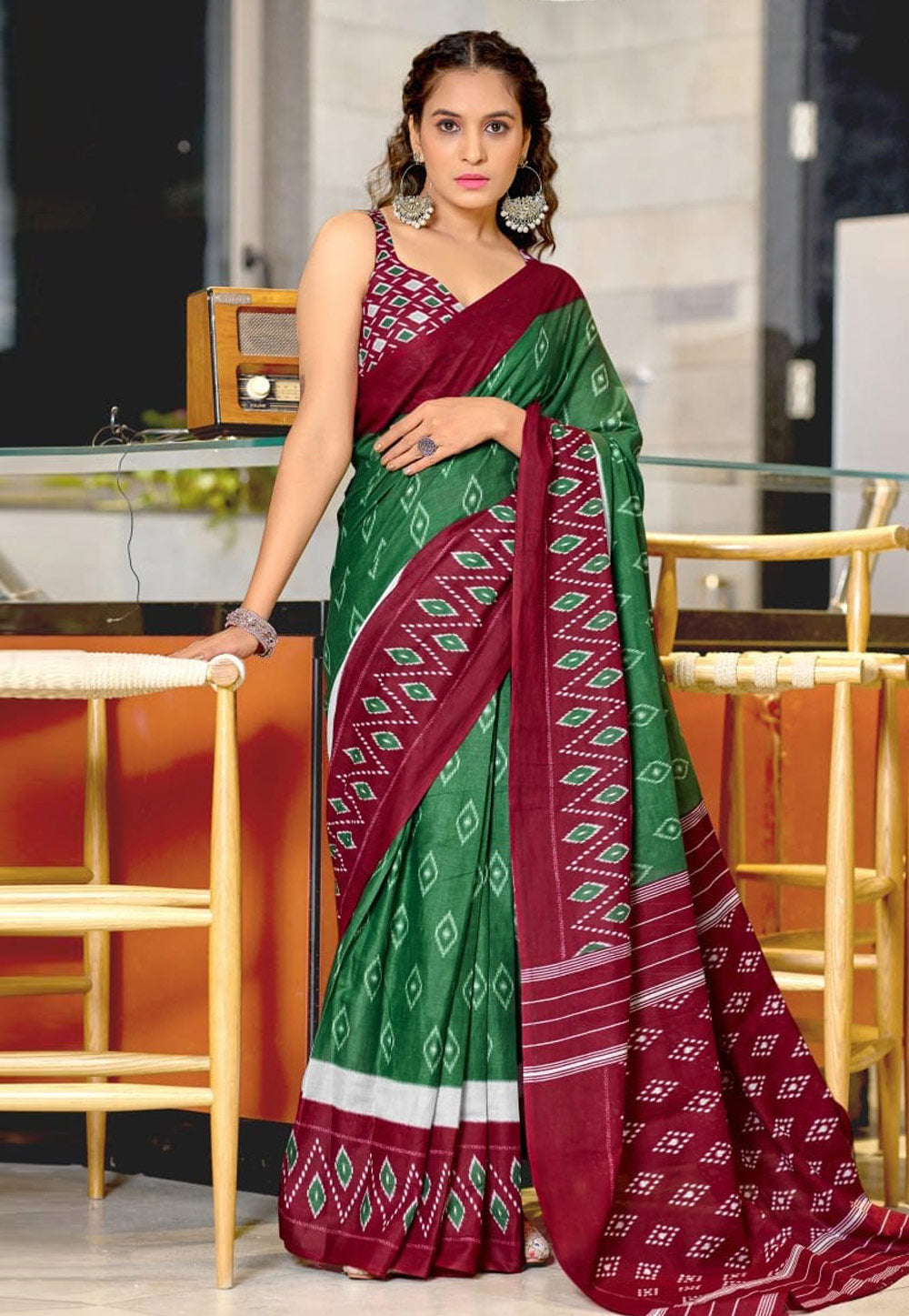 Green Cotton Saree With Blouse