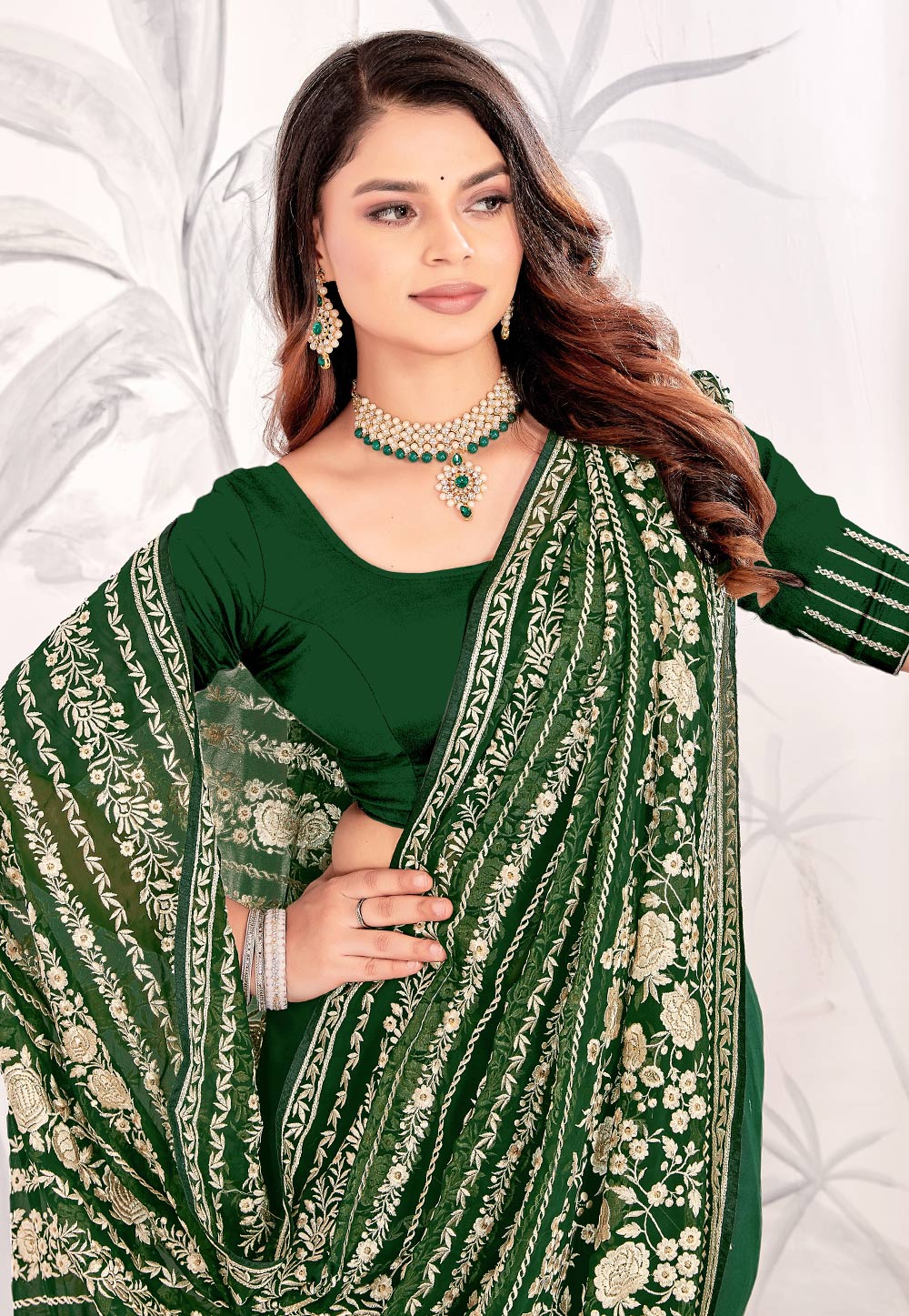 Green Georgette Saree With Blouse