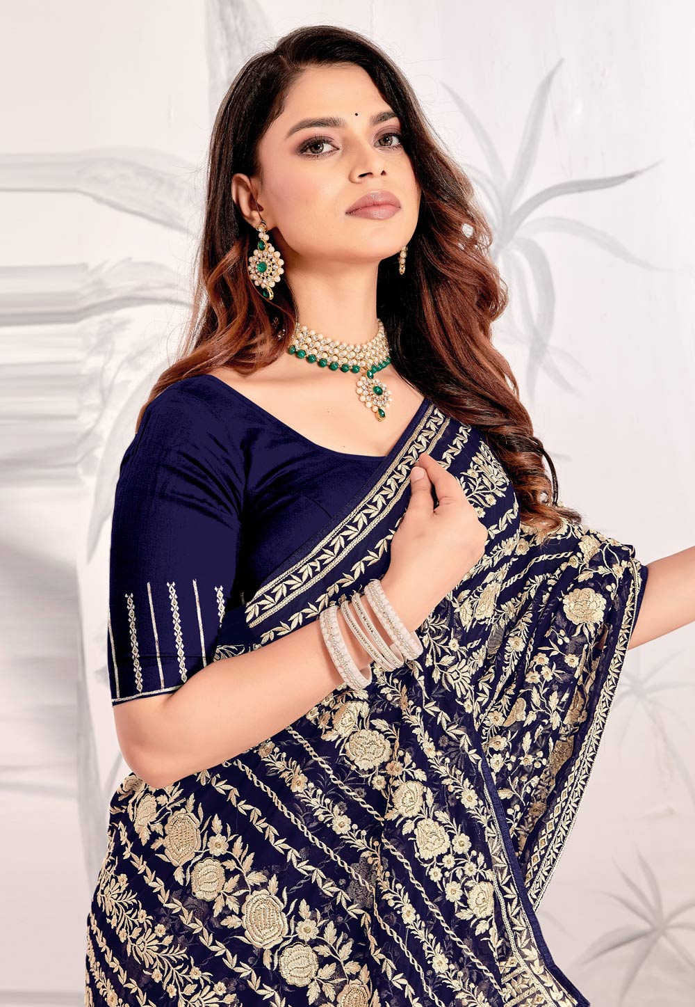 Navy Blue Georgette Saree With Blouse