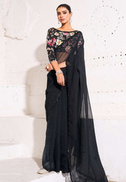 Black Chiffon Saree With Blouse