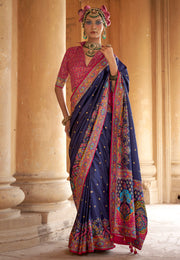 Navy Blue Silk Saree With Blouse