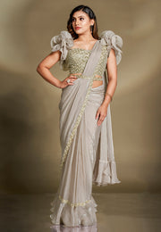 Navy Blue Shimmer Chiffon Saree With Blouse