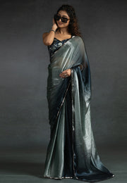 Grey Tissue Saree With Blouse