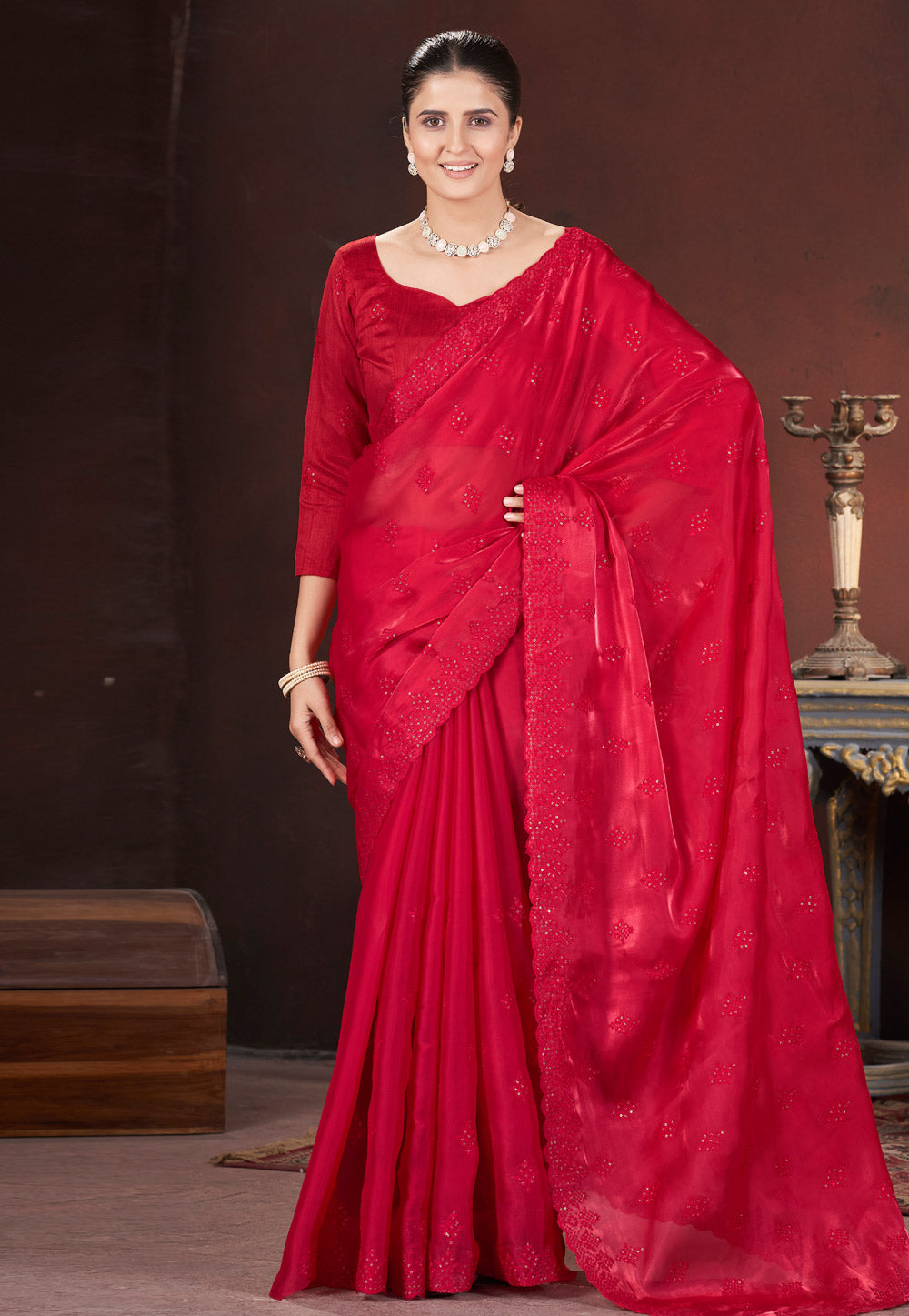 Red Silk Saree With Blouse