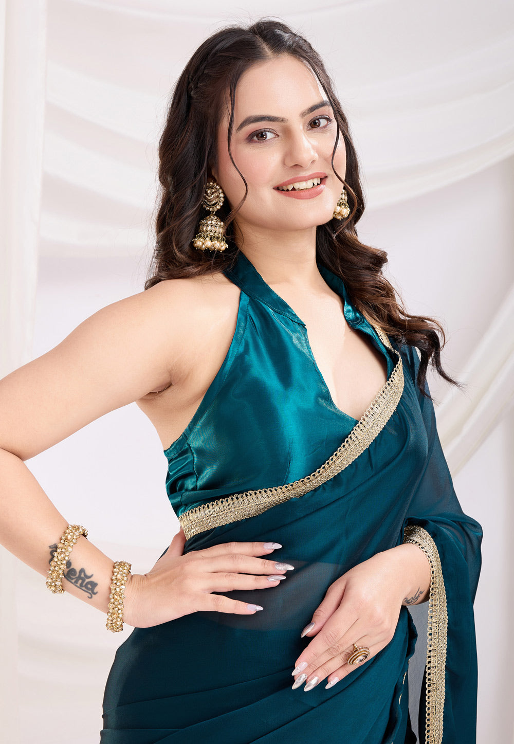 Teal Silk Saree With Blouse