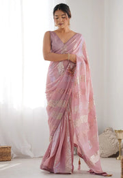 Pink Tissue Saree With Blouse