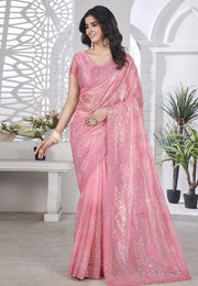 Pink Georgette Sequence Saree