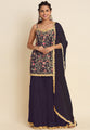 Load image into Gallery viewer, Wine Faux Georgette Sharara Suit