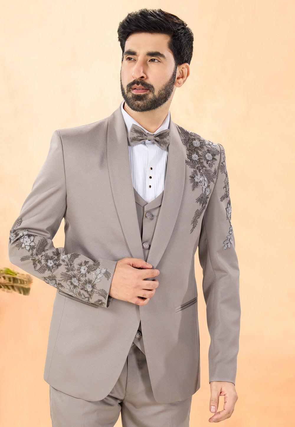 Beige Rayon Tuxedos Suit