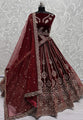 Load image into Gallery viewer, Maroon Velvet Bridal Lehenga Choli